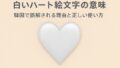 言葉 🤍白いハート絵文字の意味をやさしく解説|韓国で誤解される理由と正しい使い方 🤍白いハート絵文字の意味をやさしく解説|韓国で誤解される理由と正しい使い方はじめに|かわいいのに誤解されやすい“白いハート”とは?白いハート(🤍)は、SNSでよく見かける人気の絵文字です。けれども実は、国や文化によって意味が少し違うことをご... 言葉