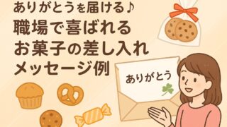 言葉 “ありがとう”を届ける♪職場で喜ばれるお菓子の差し入れメッセージ例 “ありがとう”を届ける♪職場で喜ばれるお菓子の差し入れメッセージ例はじめに|お菓子+ひとことで伝わる“やさしい気づかい”「ちょっとしたお礼を伝えたい」「頑張っている同僚にひと息ついてもらいたい」——そんなときにおすすめなのが、“お菓子の差し... 言葉